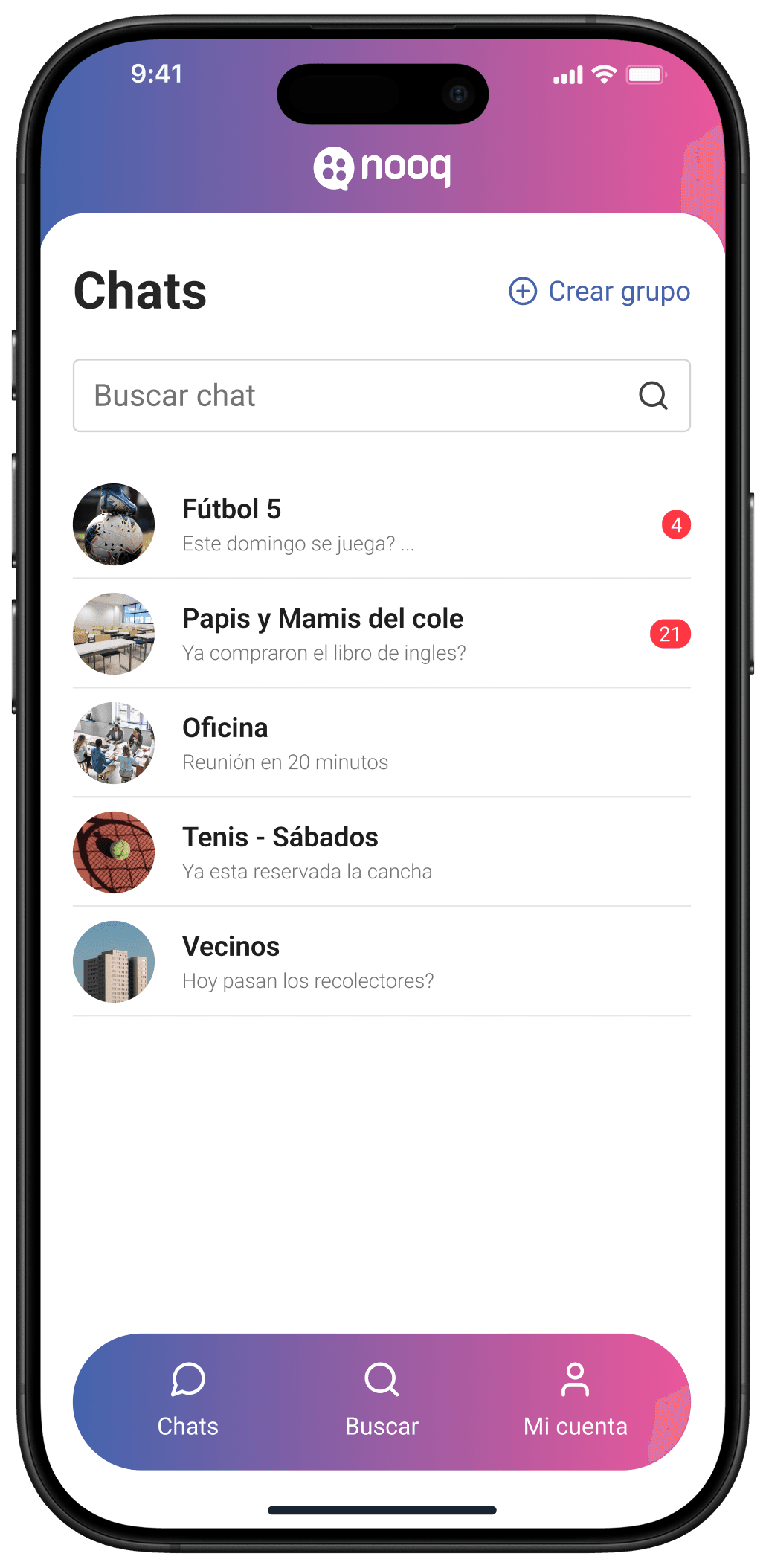 Nooq es una nueva forma de participar en chats grupales manteniendo tu privacidad. Elegí qué nombre y foto mostrar en cada grupo y controlá tu identidad en cada conversación.